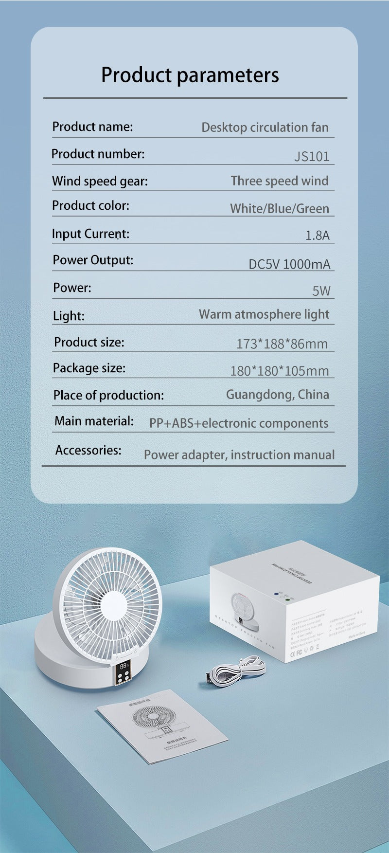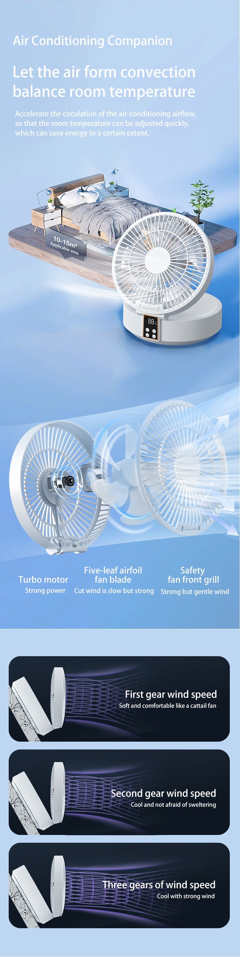 6. 90° folding design,adjustable wind direction,easy to store and save space;